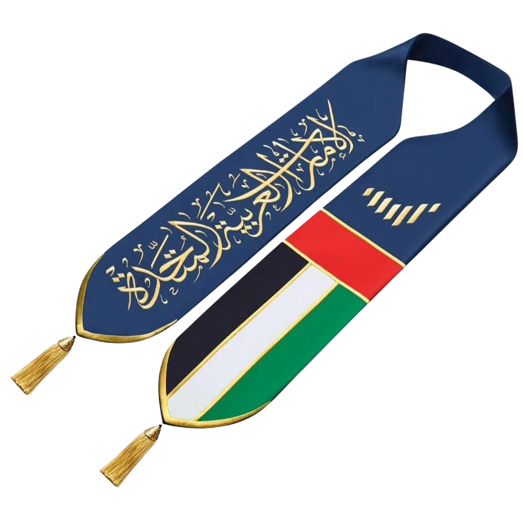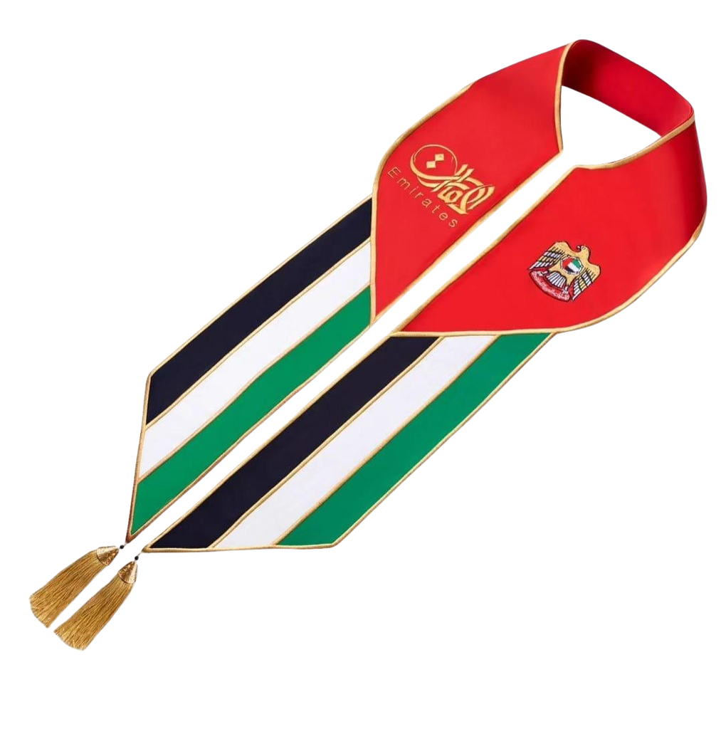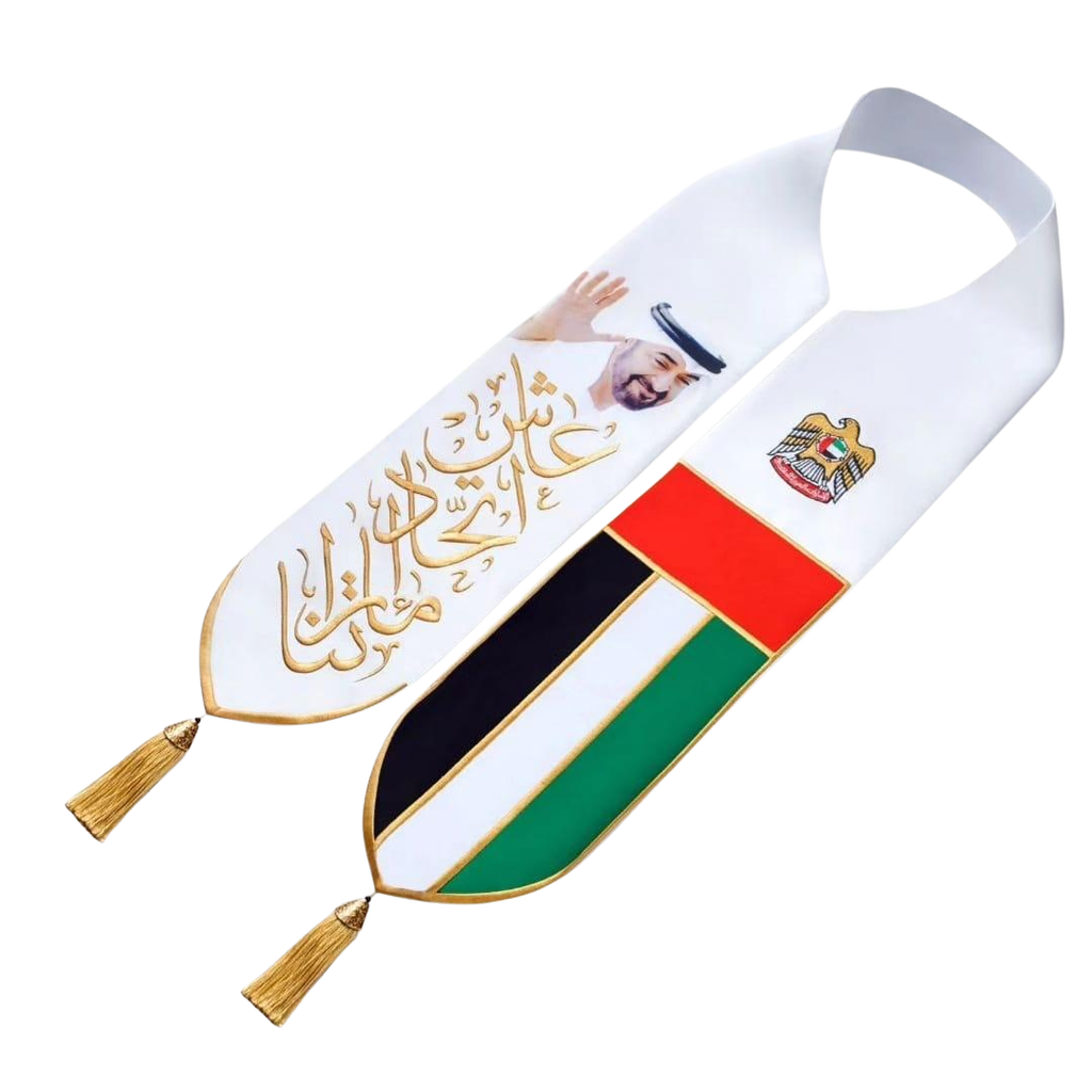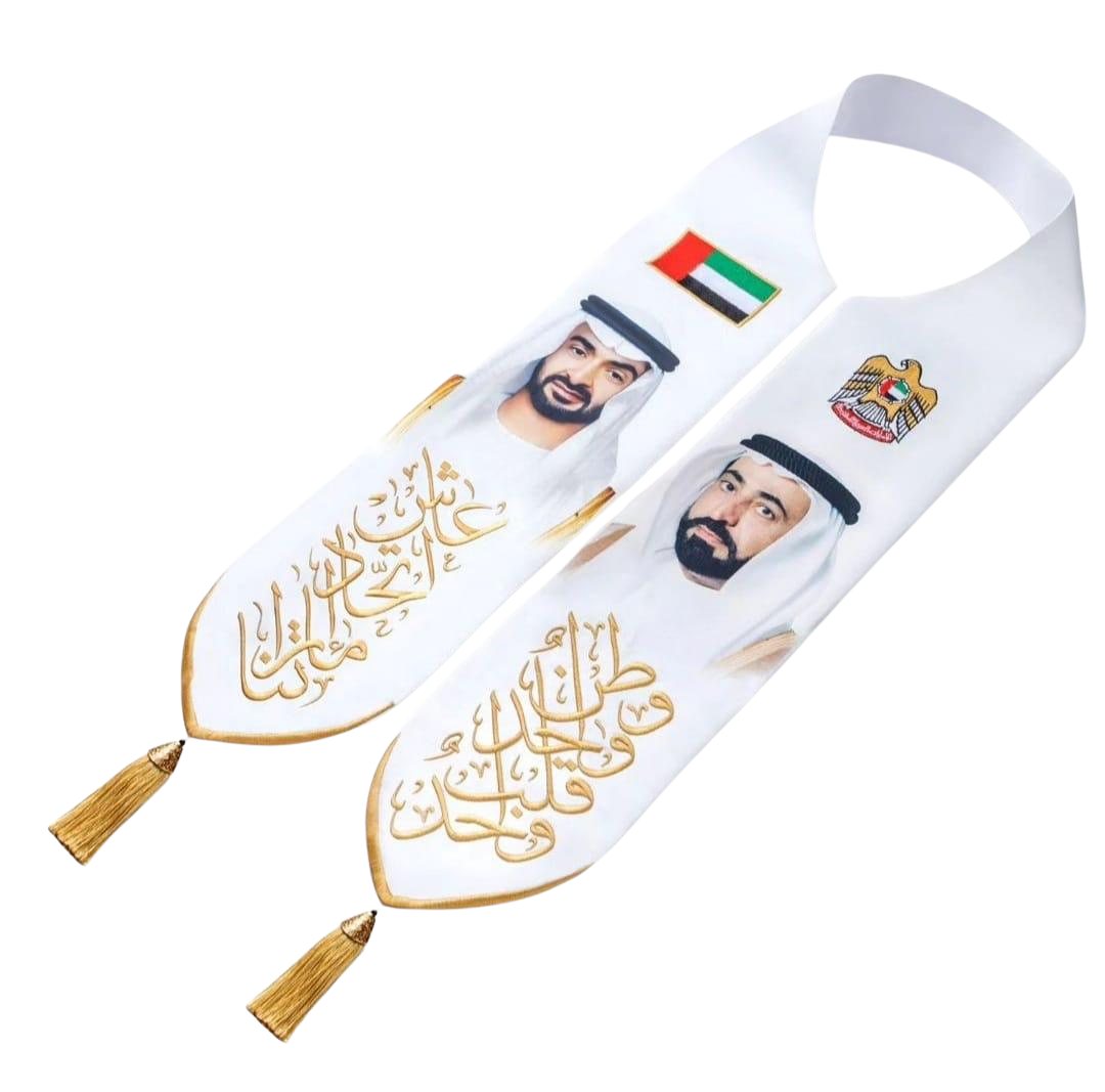 Mark the historic 50th UAE National Day with pride and elegance by adorning one of our exclusive commemorative scarves. Choose from three luxurious options Velvet Scarf for rich texture and regal feel, Satin Scarf for a luminous sheen that captures the nation’s brilliance, or the versatile Oblong Scarf for timeless sophistication. Each scarf is crafted to honor the UAE’s golden jubilee, blending national pride with modern fashion.